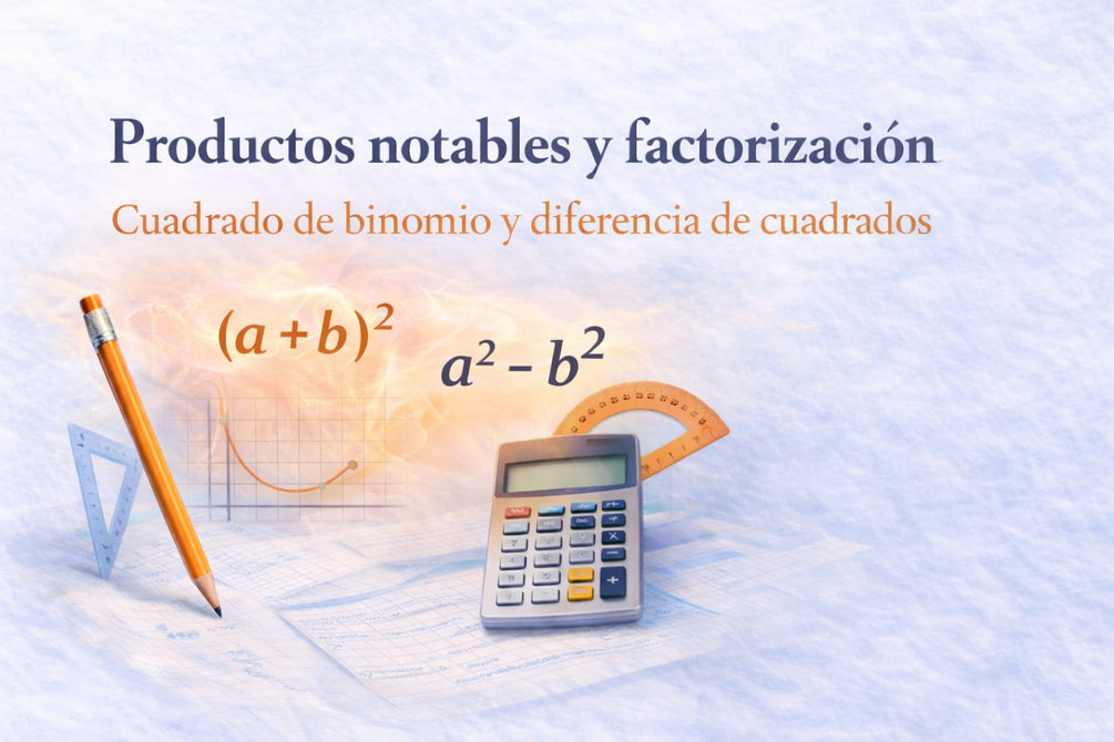 Productos notables y factorización explicados con criterio de examen, enfocados en su uso real en Física. Cuadrado de binomio y diferencia de cuadrados trabajados como herramientas algebraicas, no como recetas mecánicas.